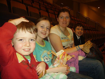 Some friends of ours phoned to say that they had 5 tickets to see the Russian Circus performing at the Waterfront Hall in Belfast. Unfortunately for them they were all unwell and couldn't go, so they offered us the tickets. We felt bad that they missed it, but it was great that we could use the tickets and they did not go to waste. So on Friday we headed to Belfast. Me, the kids and my sister H. Dan couldn't come as he was working so H gladly met us for the performance. It was very good. Jimmie and Annabelle really enjoyed it. Annabelle liked the clowns best, and Jimmie liked the acrobats. Barney talked the whole way through it, with a constant stream of questions... the first performance was a girl hanging from a great height on a long strip of fabric, turning, twirling, somersaulting. When there was a gap in the music and the whole theatre was quiet Barney piped up, at the top of his lungs "why can't I do that Mummy?" He's so cute. He had many questions... "how come that lady doesn't get hurt getting cut in half mummy?" etc.